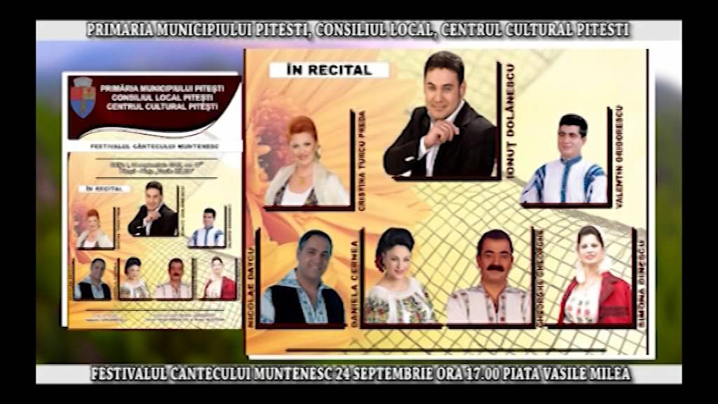 Primăria Piteşti, prin Centrul Cultural Piteşti, organizează Festivalul Cântecului Muntenesc joi, 24 septembrie, de la ora 17.00, în Piaţa Vasile Milea.