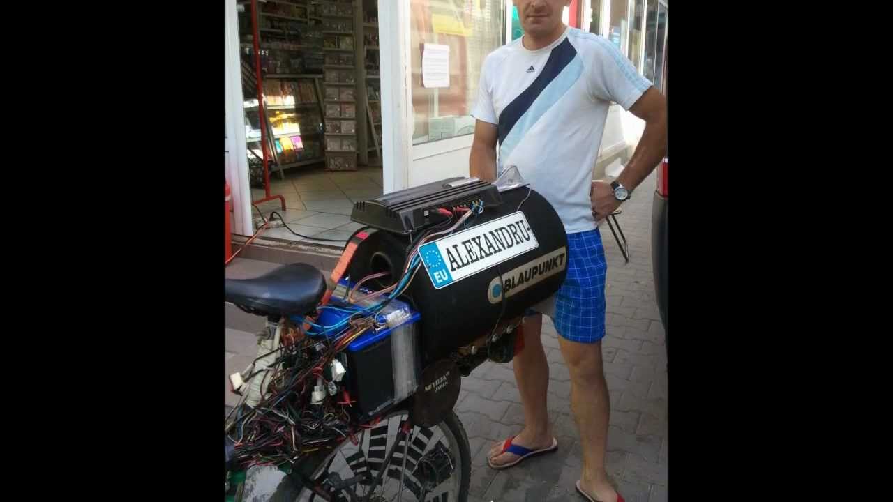 Cu o admirabilă determinare, demnă de o soarta mai bună, Alexandru şi-a transformat radical banala bicicletă. Aşa cum puteţi vedea în în materialul video, bicicleta a fost accesorizata cu o veritabilă instalaţie de sunet şi lumină. Sute de fire electrice înşirate pe cadrul bicicletei realizează conexiuni savante între bateria auto fixată pe portbagaj şi zeci de leduri multicolore, neoane, stopuri şi jocuri de lumini, claxoane, semnalizatoare. Pentru a se rafata cu un sunet de calitate, inventivul personaj a montat pe bicicletă o staţie de amplificare şi un subwoofer auto de mare putere, un egalizator şi mai multe twittere şi difuzoare-satelit. Panoul de comandă înghesuie între coarnele bicicletei un radio-cd auto, un emulator mp3, cititoare de carduri şi usb, un sistem handsfree pentru telefon şi cine mai ştie ce.