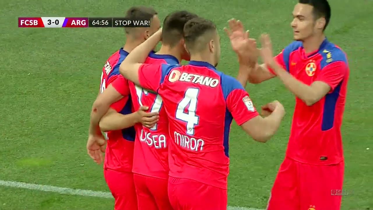 A fost un adevărat galop de sănătate pentru echipa patronată de Gigi Becali, care a profitat de timiditatea excesivă a oaspeților. Semnalul a fost dat de Tănase, care a deschis scorul încă din minutul 8, din penalty, după un fault caraghios comis de gafeurul de serviciu al piteștenilor, Joao Miguel. Omul acuzat vehement de conducerea vicecampioanei că ar fi ajutat CFR-ul gafând în meciurile pe care Argeșul le-a jucat contra campioanei le-a făcut un „cadou” special și celor de la FCSB, netezindu-le drumul spre victorie.